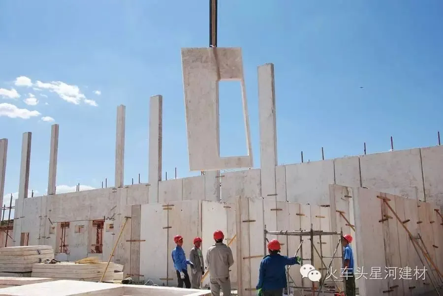 星河建材的装配式建筑材料85%是秸秆做成的,这种建筑材料能做到造房不用梁,不用柱,抗老化,使用寿命长,做到立着可以做墙当柱,横着可以做梁当板、当挑,在建造过程中不变形、不会有裂纹。造房速度快,建材承重性能好,3天可建300平米的别墅,建筑材料也可拆卸重复使用。